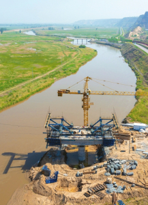 黃河萬(wàn)榮段汾河治理保護(hù)工程防汛搶險(xiǎn)聯(lián)通橋工程正在加緊施工。