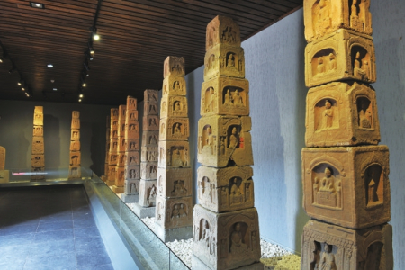 走進(jìn)長(zhǎng)治市博物館,仿佛進(jìn)入了歷史的長(zhǎng)廊,從創(chuàng)世之初、石之美者、塑土成陶、晶玉之瓷到吉金佳器,5個(gè)單元的館內(nèi)陳列展覽盡顯了長(zhǎng)治古老的文明。其中的“創(chuàng)世之初”主要反映早期人類(lèi)在長(zhǎng)治地區(qū)的生產(chǎn)生活痕跡。展品有義和、花坡兩處舊石器時(shí)代文化遺址和多處新石器時(shí)代文化遺址,表明了長(zhǎng)治是中華文明的早期發(fā)祥地之一?!笆勒摺标惲械挠袷褡炼傻钠魑铮饕鐾劣谖髦?、春秋、戰(zhàn)國(guó)墓葬中,種類(lèi)豐富,精美非凡。多為祭祀、禮儀、裝飾、陳設(shè)用品,有極高的歷史價(jià)值和藝術(shù)價(jià)值?!八芡脸商铡闭龟惖奈奈镏饕翘掌鳎瑥男率鲿r(shí)代遺址中出土的體現(xiàn)“龍山文化”特色的陶器,到商代、漢代,直至隋唐之際的陶器,時(shí)間跨度非常之大。種類(lèi)涵蓋飲食器、貯藏器等生活實(shí)用器和專(zhuān)為殉葬而制作的各類(lèi)明器。尤其是用作明器的三彩陶器,凡與死者在世生活有關(guān)的如建筑、家具、牲畜和人物等無(wú)不具備,包羅萬(wàn)象,真實(shí)再現(xiàn)了當(dāng)時(shí)各個(gè)階層人士的不同生活面貌?!熬в裰伞闭龟惖挠兴宕那啻善鳌⑻拼陌状?,以及宋、金、元代的瓷器。據(jù)介紹,珍藏的宋、金、元時(shí)期瓷器品種數(shù)量多,南、北窯系均有,主要以霍州窯和磁州窯系列為主,其中,長(zhǎng)治的八義窯(磁州窯系)生產(chǎn)的紅綠彩瓷是我國(guó)北方地區(qū)較具特色的釉上彩瓷?!凹鸺哑鳌闭故镜膭t是青銅器,以商、周器物為主。長(zhǎng)治出土的商代器物與二里崗、殷墟時(shí)期銅器風(fēng)格一致,表明了晉式銅器的精美藝術(shù)造型和高超的工藝水平。