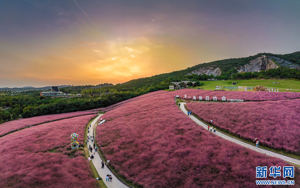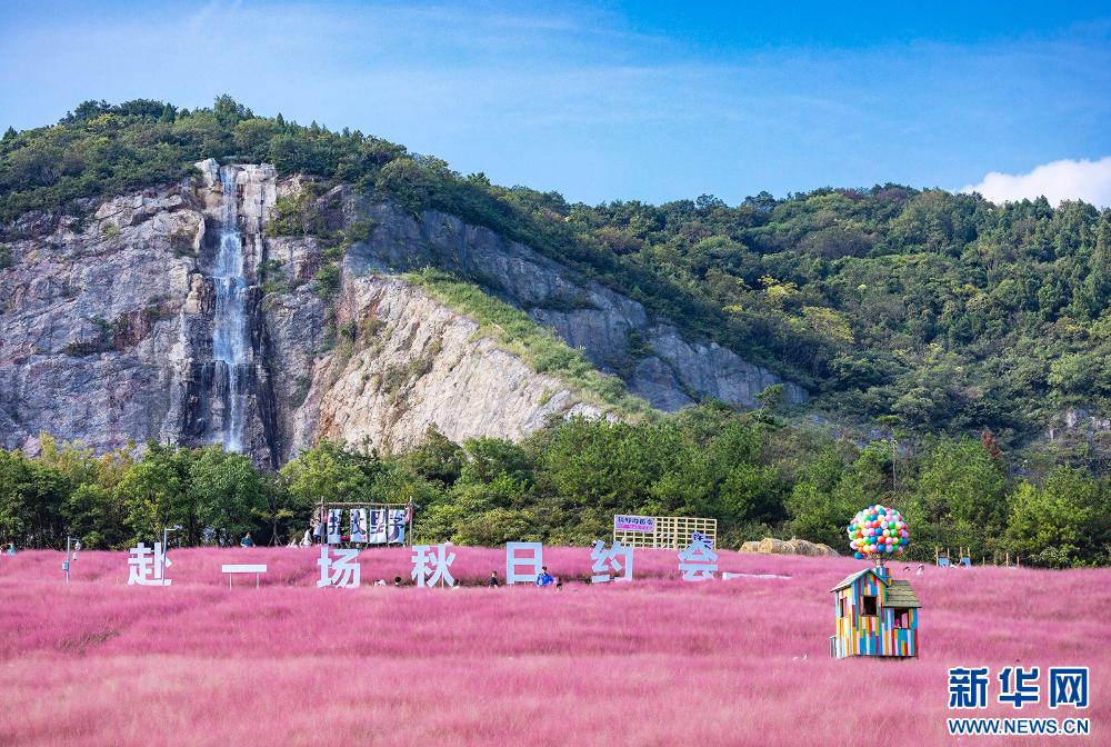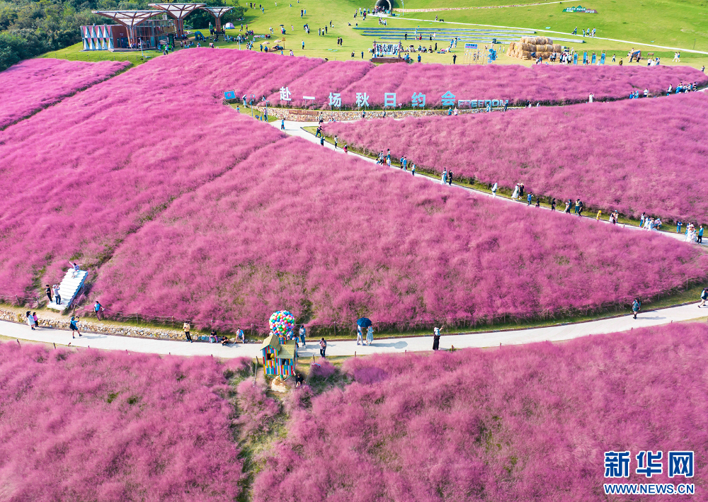 眼下,南京江寧湯山礦坑公園大片粉黛亂子草進入盛花期。一株株粉黛亂子草,聚成了粉色的“云?!?,粉色的花穗曼妙輕盈、如煙似霧,吸引不少市民前來觀賞,為濃濃秋意增添一份浪漫。(沙芳如 報道員:劉偉)