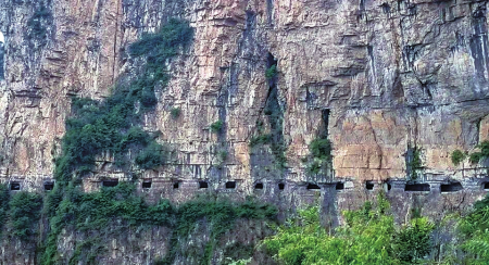 在太行山脈的晉豫交界帶,是我國第一階梯和第二階梯的分界線。在山脈的東西兩側(cè),地勢險要,垂直落差極大,形成了一座座筆直陡峭的懸崖絕壁,也構(gòu)造了大自然鬼斧神工的絕佳壯美奇景,卻也因此地形阻礙了大山居民的出行之路,千百年來的大山人民過著與世隔絕的生活。到了20世紀(jì)五六十年代,大山的居民們以愚公移山的精神,克服重重苦難,在懸崖峭壁上一錘一斧開出了一條條連接大山與外界的“掛壁公路”。