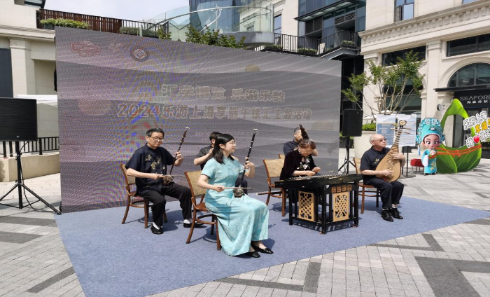 6月8日,非遺項目江南絲竹亮相上海市徐匯區(qū)衡山路8號廣場空間。新華社記者 陳愛平 攝