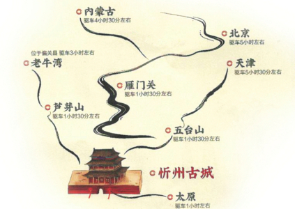 來到這里,你可以站在溝壑縱橫、梁峁起伏的黃土高原,欣賞懸崖峭立、水石相激的晉陜峽谷,也可以在古木參天、濃蔭蔽日的森林公園里散步,在百草茂盛、一望無垠的高山草甸上仰望星空。你可以游覽世界文化景觀遺產(chǎn)、佛教名山的五臺(tái)山,也可以領(lǐng)略秀容、岢嵐、寧化、代州4座悠遠(yuǎn)古城的各有千秋,登攀三關(guān)營(yíng)堡、歷朝歷代的邊塞長(zhǎng)城。你可以在偏關(guān)老牛灣古渡、河曲西口古渡搖櫓渡河,回想晉商的輝煌,也可以身臨夜襲陽明堡飛機(jī)場(chǎng)遺址,重溫榮耀,感受歷史的震撼……