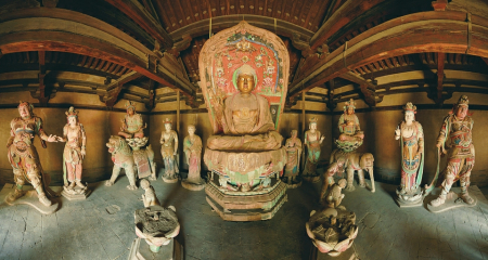 五臺(tái)佛光寺東大殿唐代彩塑刻畫入微,體態(tài)豐滿,展現(xiàn)了唐代彩塑的高超技藝。