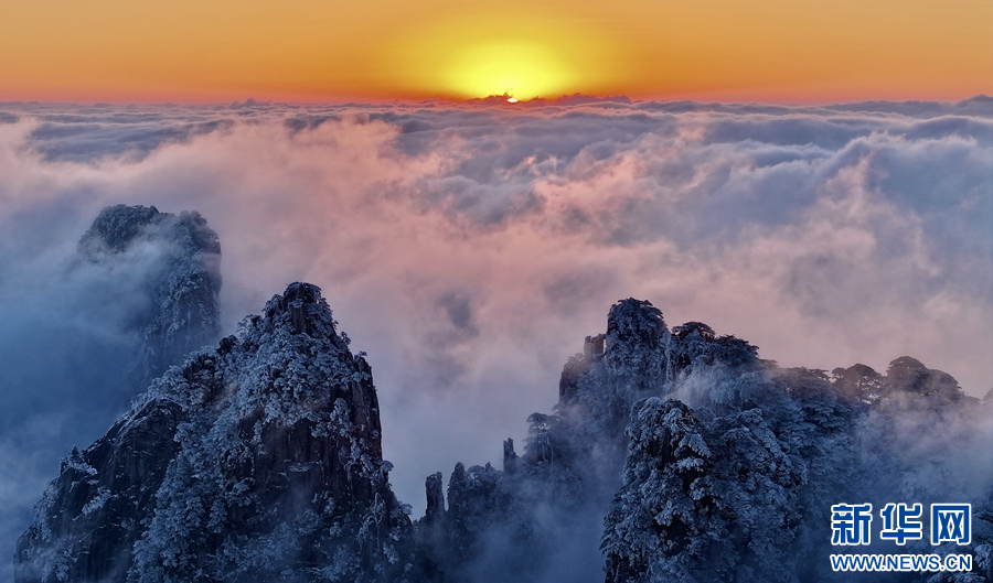 近日,安徽黃山雪后初霽,山峰銀裝素裹,滿目玉樹瓊枝。云霧如同舞者般在白雪皚皚的峰巒間穿梭嬉戲,宛如一幅渾然天成的水墨丹青。
