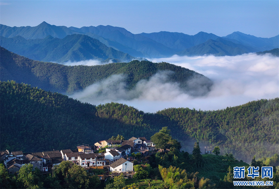 當(dāng)日,雨后初霽的安徽省黃山市休寧縣溪口鎮(zhèn)木梨硔村出現(xiàn)磅礴壯美的云海景觀。連綿的群山與漂浮的云海環(huán)抱著依山而建的徽派古村落,勾勒出一幅絕妙的秋日水墨畫(huà)卷。新華網(wǎng)發(fā)(施亞磊 攝)