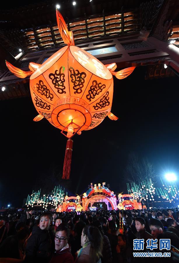 2月22日晚,游人在夫子廟景區(qū)觀燈游玩。當晚,在江蘇南京夫子廟秦淮風光帶舉辦的秦淮燈會彩燈齊放,人們前來觀燈鬧元宵。 新華社記者孫參攝