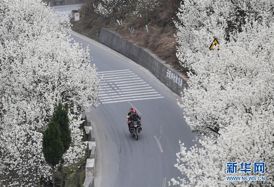 3月2日,薛家灣村公路兩旁櫻桃花盛開。近日,陜西旬陽縣段家河鎮(zhèn)薛家灣村連片的櫻桃花競相綻放,形成一道靚麗的風景線。據(jù)了解,當?shù)卣鶕?jù)實際情況,大力發(fā)展薛家灣村櫻桃種植業(yè),打造生態(tài)旅游村。目前該村櫻桃年產(chǎn)值980余萬元,果農(nóng)人均年增收5000余元。新華社發(fā)(邵瑞 攝)