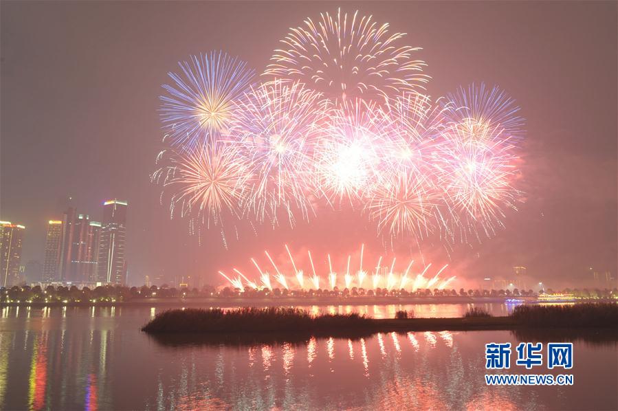2017年1月1日夜晚,長沙橘子洲附近湘江上空綻放絢麗焰火。當(dāng)晚,湖南長沙橘子洲舉行焰火晚會(huì)慶祝新年到來。整場焰火晚會(huì)主題為“多彩星城、魅力長沙”,焰火燃放時(shí)間約20分鐘。 新華社記者 龍弘濤攝