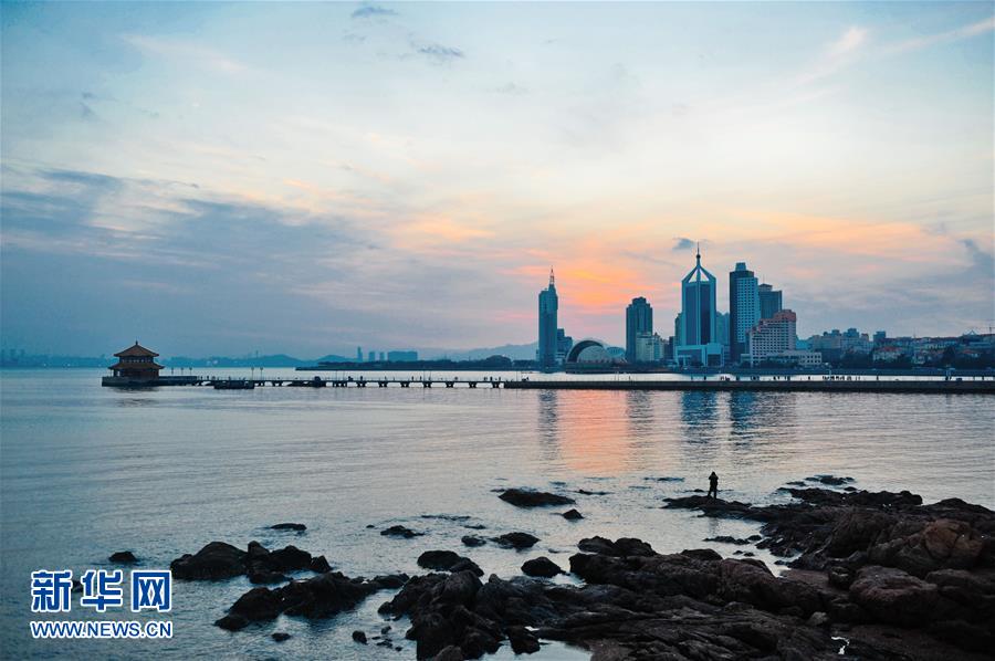 1月10日在青島棧橋景區(qū)黃昏景色。當(dāng)日,山東省青島市天氣晴好,黃昏時(shí)分沿海一帶景色迷人。 新華社發(fā)(王海濱 攝)