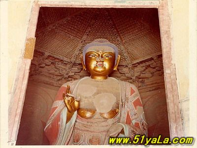 走進第一層塔的南門,迎面便是高約10米的釋迦塑像。頂部有精美華麗的藻井。內(nèi)槽的墻壁上,畫有六幅如來佛像,門洞兩側(cè)的墻壁上,也繪有金剛、天王、弟子等壁畫。壁畫中最引人注目的是內(nèi)槽門額壁板上的三個女供養(yǎng)人。畫面雖不大,但人物的體態(tài)勻稱,面容豐滿,神情安詳而虔誠,衣帶似被微風(fēng)吹動,在表態(tài)中給人以動的感覺。畫面的色彩至今仍很鮮艷,可能是后人在遼畫的基礎(chǔ)上重新描飾的。