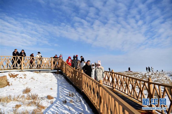 11月26日拍攝的新疆福??h烏倫古湖海上魔鬼城景區(qū)美景。 福??h烏倫古湖海上魔鬼城景區(qū)位于新疆阿勒泰地區(qū)福??h吉力湖東岸,有著獨(dú)特的雅丹地貌和水域景觀,是當(dāng)?shù)刂穆糜蝿俚亍?新華社記者 沙達(dá)提 攝