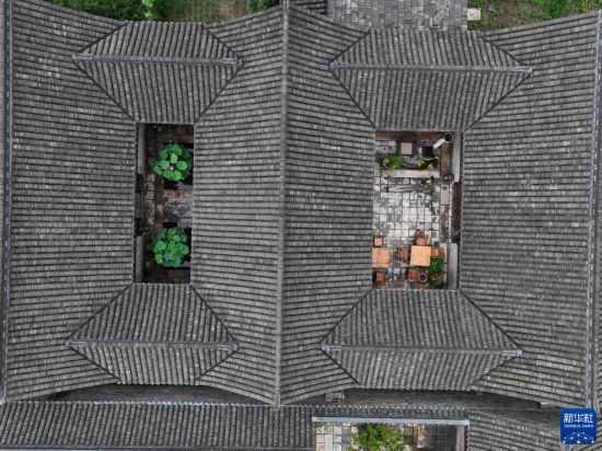 7月11日拍攝的穆溝古村民宿(無人機照片)。