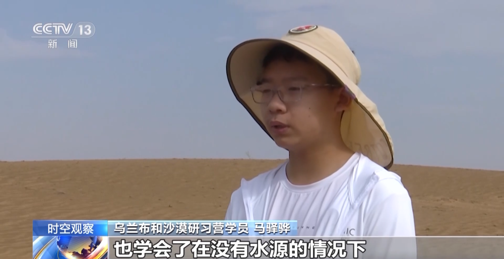 烏蘭布和沙漠研習營學員 馬驛驊:通過這次研學之旅沙漠徒步,學會了在沒有指南針的情況下,如何用各種辦法來判別方向,也學會了在沒有水源的情況下,如何獲得水源。