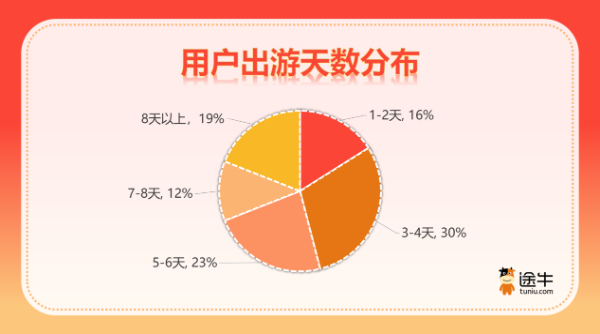 途牛旅游網(wǎng)《2023中秋國慶旅游消費盤點》顯示,面對不可多得的8天假期,游客平均出游天數(shù)較“五一”和暑假均顯著增長,更多游客選擇了5天及以上的出游行程,出游人次占比達54%。