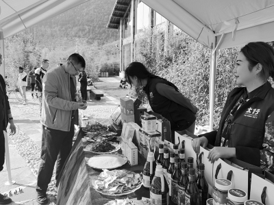 在旅途中,不斷有村落和觀景臺交替出現(xiàn)。觀景臺上視野開闊,空氣清新,吸引了不少游客,也有附近的村民擺攤賣貨。售賣商品琳瑯滿目,有小吃、飲料、文創(chuàng)旅游紀(jì)念品等,還有附近招攬游客入住民宿的店主。在觀景臺欣賞風(fēng)景的游客鄭川,來自河南駐馬店,就住在村民家的民宿中?!耙郧皝砺糜?,主要是奔著名氣大的王莽嶺,現(xiàn)在交通越來越方便,沿著旅游公路到處都是風(fēng)景!”鄭川說。