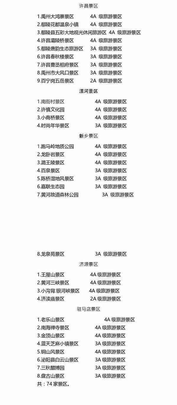 其中,鄭州的年票景區(qū)“十一”假期期間暫停使用,中原福塔景區(qū)在7個法定節(jié)假日期間暫停使用。平頂山、新鄉(xiāng)、焦作、許昌、濟源和駐馬店的年票景區(qū)在“五一”、“十一”和“春節(jié)”假期,年票暫停使用。如遇景區(qū)舉辦重大節(jié)慶活動,為保障旅游安全,避免發(fā)生旅游安全事故,活動開始后、年票暫停使用時間不應(yīng)超過15天。未注明年票暫停使用時間的城市(漯河市),年票景區(qū)節(jié)假日期間,年票正常使用。