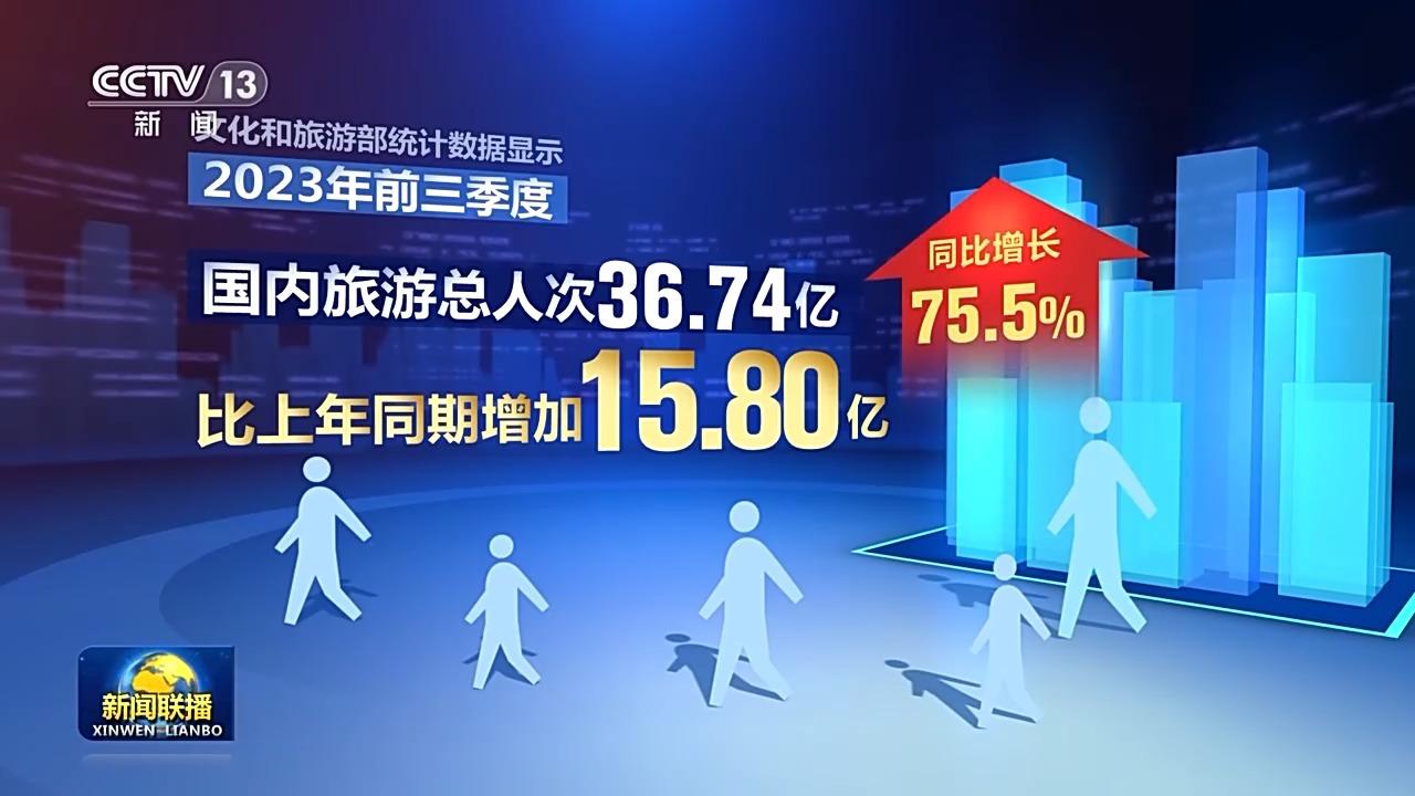 文化和旅游部統(tǒng)計數(shù)據(jù)顯示,2023年前三季度,國內(nèi)旅游總?cè)舜?6.74億,比上年同期增加15.80億,同比增長75.5%。2023年前三季度,居民國內(nèi)出游總花費3.69萬億元,比上年增加1.97萬億元,增長114.4%。預(yù)計在今年12月至明年春節(jié)期間,冰雪游、出入境旅游等消費將迎來新高。