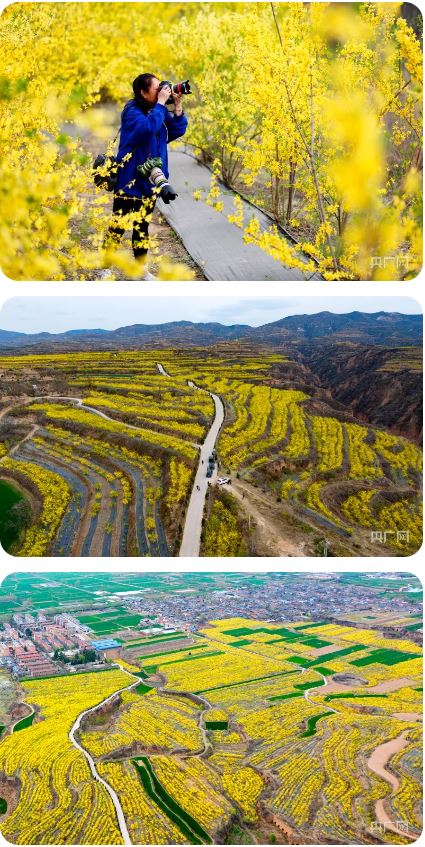 成片的連翹花隨著山勢(shì)起伏綿延(李現(xiàn)俊 攝)山西日?qǐng)?bào)新媒體綜合報(bào)道 眼下,山西臨汾市翼城縣南梁鎮(zhèn)近2萬(wàn)畝連翹花迎春盛開(kāi)。成片的連翹花隨著山勢(shì)起伏綿延,燦若金色云霞,一派春意盎然的景象,吸引眾多游人前來(lái)觀花海、賞春光。