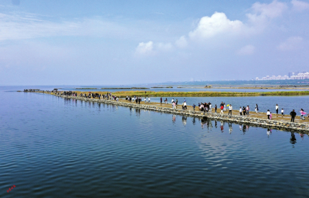 太原市汾河四期,游人享受海濱的感覺。