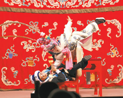 江蘇省昆山市石牌中心小學校學生表演《擋馬》。新華社記者 金良快攝