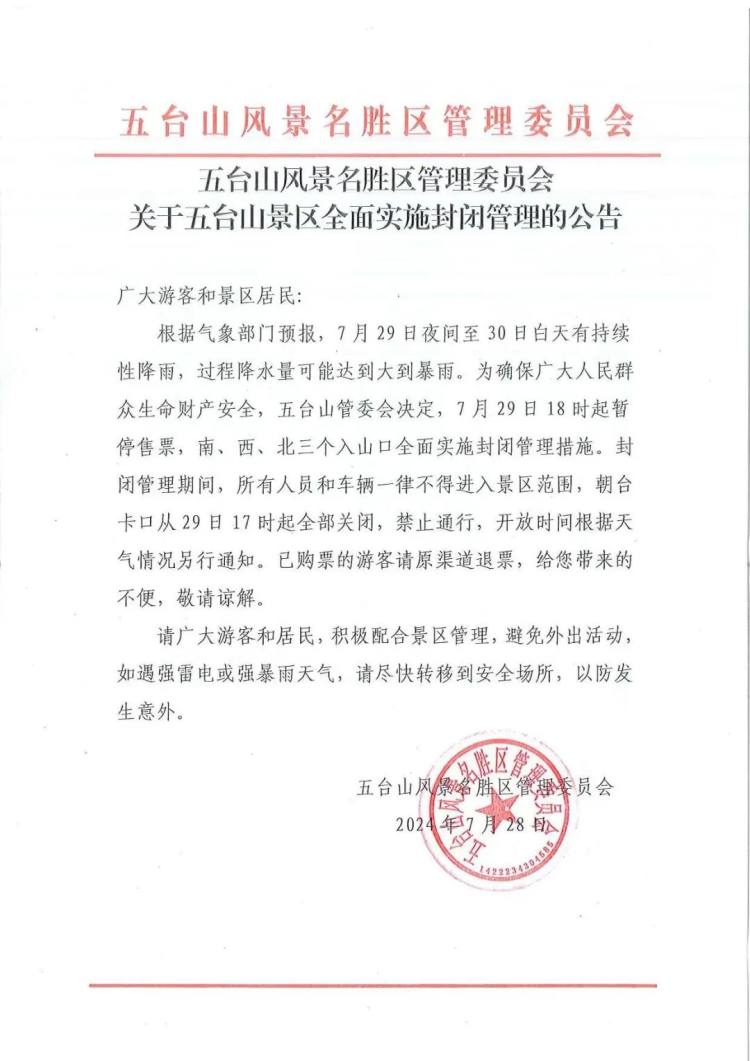 7月29日18時(shí)起五臺(tái)山景區(qū)全面實(shí)施封閉管理