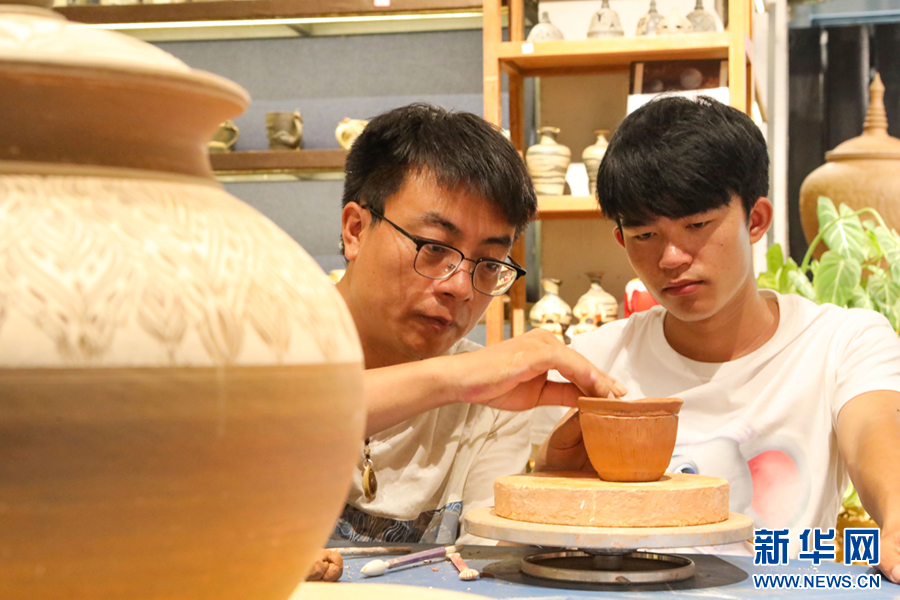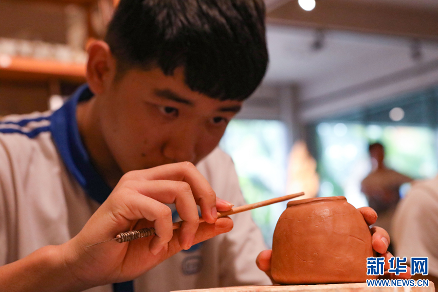7月28日,學(xué)生在云南省西雙版納傣族自治州景洪市一家傣陶廠學(xué)習(xí)傣族慢輪制陶。