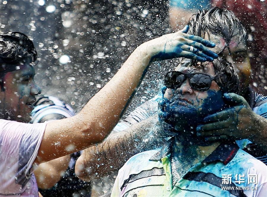 胡里節(jié)也叫“灑紅節(jié)”,人們在自己臉上和身上涂上顏料,還向別人拋撒五顏六色的顏料和粉末,迎接春天的到來。新華社發(fā)(吳昂 攝)