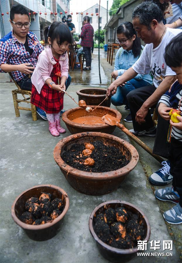 “立夏”節(jié)氣,在歷史悠久的水鄉(xiāng)古鎮(zhèn)——杭州塘棲古鎮(zhèn),村民在老刀糕餅鋪老師傅的帶領下,沿襲傳統(tǒng)習俗,用米粉制作“立夏狗”、搭土灶蒸“野米飯”、用草木灰做“灰鴨蛋”,以水鄉(xiāng)特有的民俗迎接初夏。新華社記者 徐昱 攝