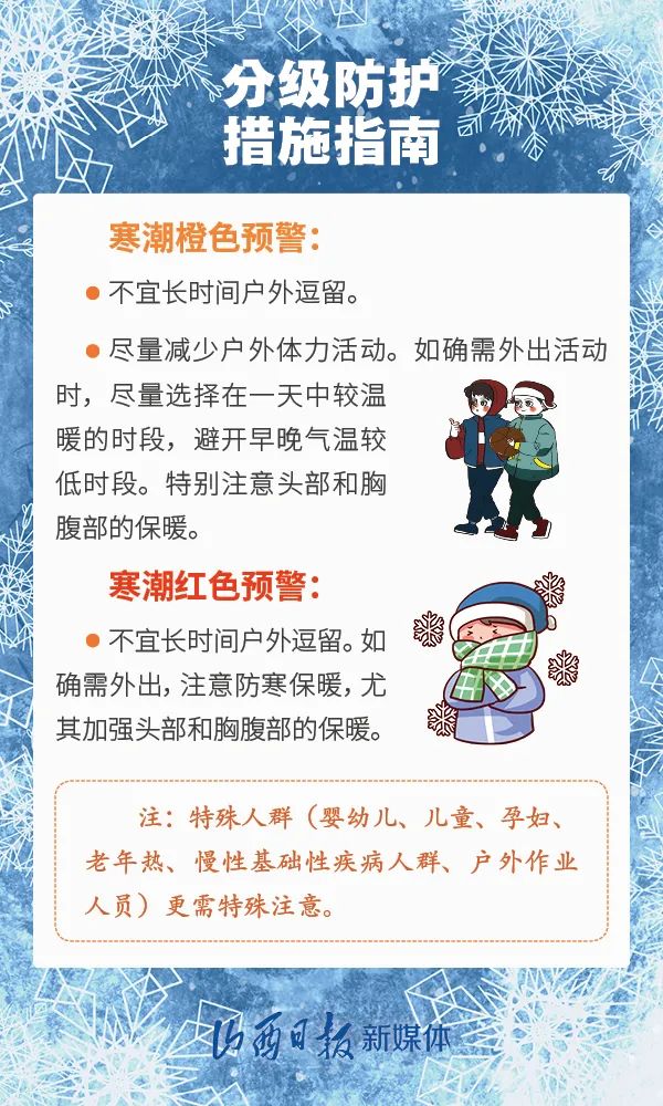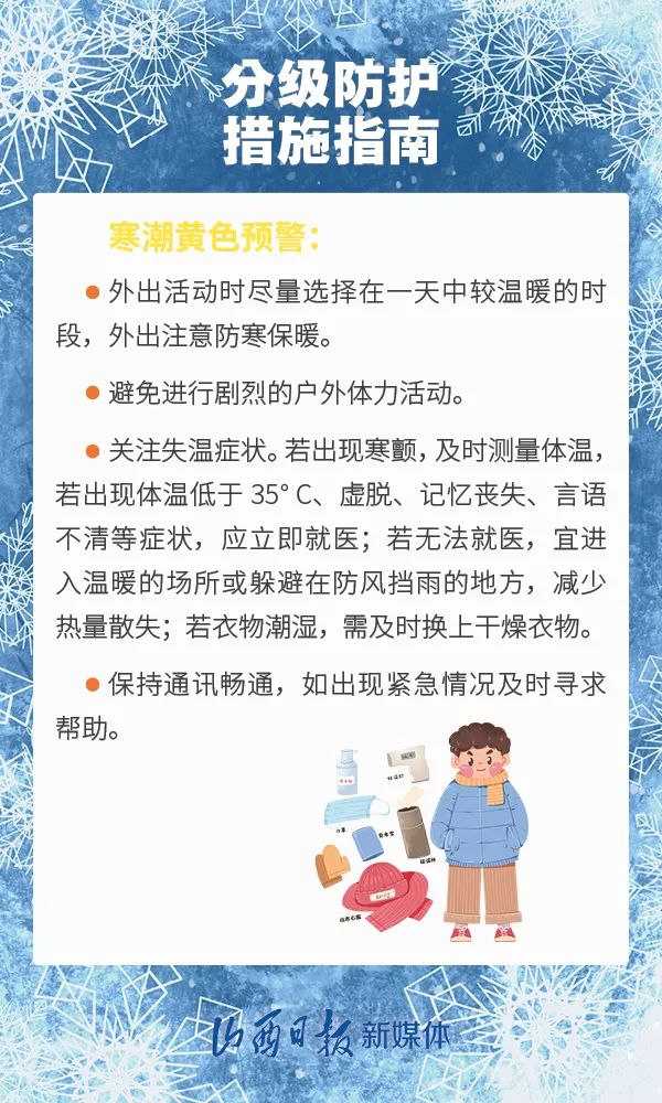 寒潮來(lái)襲 大家要密切留意 臨近預(yù)警預(yù)報(bào)信息 注意添衣保暖 同時(shí)做好防風(fēng)、防滑等工作 國(guó)家疾控局發(fā)布的 這份防護(hù)指南請(qǐng)收好! ↓↓↓