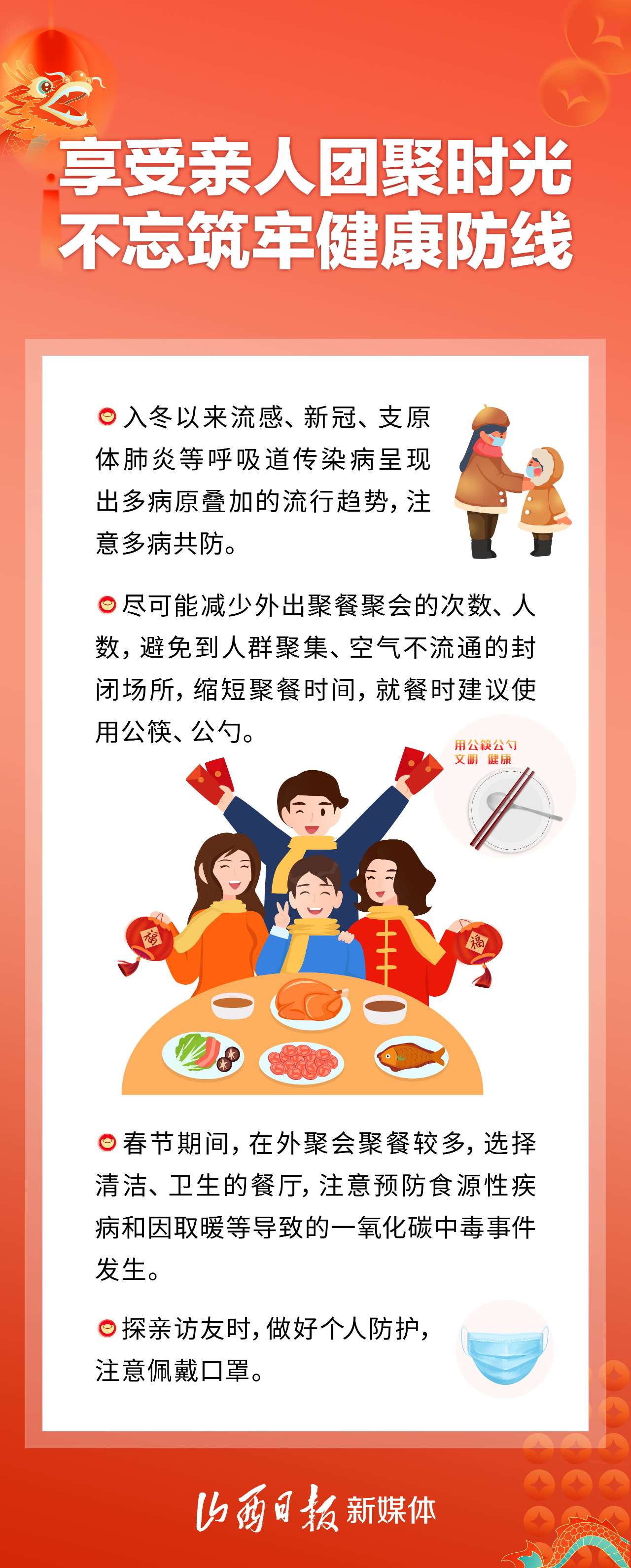 當(dāng)前正值呼吸道、腸道傳染病多發(fā)季節(jié),伴隨春節(jié)假期的來(lái)臨,人員流動(dòng)和聚集性活動(dòng)明顯增多,做好個(gè)人防護(hù)很重要。為此送上健康小貼士,開開心心迎新年。