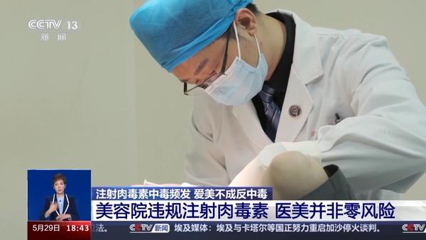 解放軍總醫(yī)院第五醫(yī)學(xué)中心化學(xué)損傷中毒救治科主治醫(yī)師 江云:肉毒素中毒的癥狀主要表現(xiàn)為顱神經(jīng)支配受到影響的一些癥狀,比如頭暈眼花、乏力、頸項(xiàng)無力,然后視物模糊復(fù)視等,再往后嚴(yán)重的話可能會(huì)出現(xiàn)一些構(gòu)音(說話)障礙、吞咽困難、飲水嗆咳等,當(dāng)然更嚴(yán)重的可能就會(huì)出現(xiàn)呼吸衰竭,甚至可能會(huì)危及生命。 解放軍總醫(yī)院第五醫(yī)學(xué)中心化學(xué)損傷中毒救治科主任 張錫剛:對肉毒毒素中毒最特效的方法就是注射抗肉毒毒素血清,這是一個(gè)特效解毒藥。 美容院違規(guī)注射肉毒素 醫(yī)美并非零風(fēng)險(xiǎn) 事實(shí)上,肉毒素作為藥品,對于它的運(yùn)輸、儲(chǔ)存、注射量、注射機(jī)構(gòu)和注射醫(yī)師均有嚴(yán)格的要求,而美容院一旦在任何一個(gè)環(huán)節(jié)存在不規(guī)范的問題,都有可能導(dǎo)致肉毒素中毒危險(xiǎn)。如果在美容院接受不規(guī)范治療,將產(chǎn)生怎樣的后果呢? 肉毒素中毒患者 郝女士:我的臉很大,然后我就覺得咬肌變小一點(diǎn)就行了。打了瘦臉的,是那種韓國綠毒。我就覺得我朋友打都變好看了,我也想去打,反正說是打了就臉會(huì)變小。 記者了解到,除了希望臉部或身體不同部位變瘦以外,還有一些人注射肉毒素是希望祛除皺紋。有統(tǒng)計(jì)顯示,在所有年齡段的醫(yī)美消費(fèi)者中,肉毒素注射的關(guān)注度高達(dá)56%以上,那么肉毒素究竟是一種什么樣的藥物呢?
