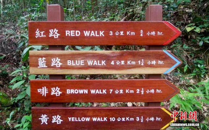 資料圖:中國香港,一處郊野公園的路徑指示牌清晰醒目,方便徒步者選擇。中新網(wǎng)記者 孫自法 攝