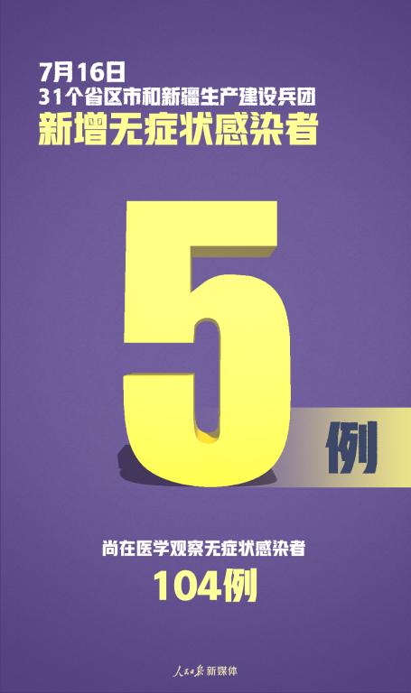 7月16日0—24時,31個?。ㄗ灾螀^(qū)、直轄市)和新疆生產(chǎn)建設(shè)兵團(tuán)報告新增確診病例10例,其中境外輸入病例9例(廣東4例,上海1例,江蘇1例,山東1例,廣西1例,陜西1例),本土病例1例(在新疆);無新增死亡病例;新增疑似病例1例,為境外輸入病例(在上海)。