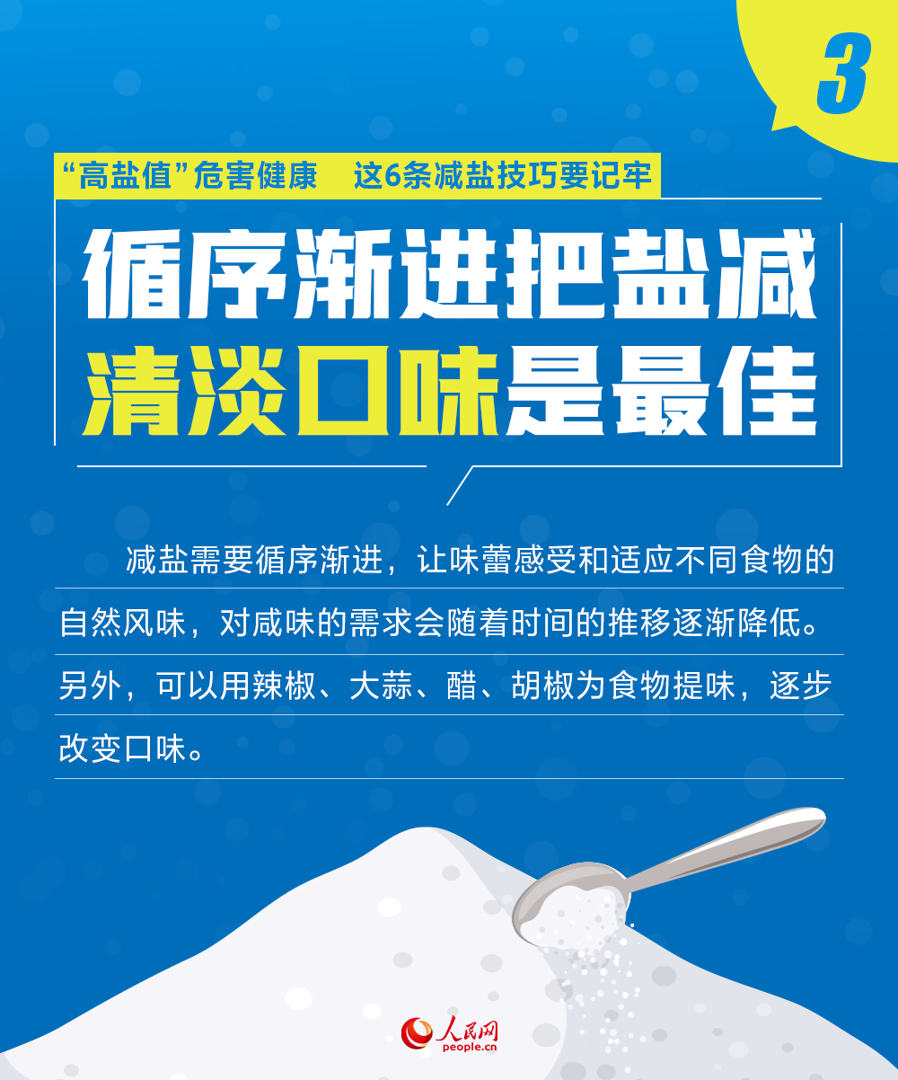 每年9月15日所在的第三周是“915”減鹽周。減鹽是一件關乎每個人健康的大事。鹽的主要成分是氯化鈉。高鈉攝入作為高血壓的重要誘因,會使心腦血管疾病發(fā)病與死亡的風險升高,增加腦卒中、冠心病、心血管疾病的死亡風險。同時,高鈉飲食還可能增加慢性腎臟病、骨質(zhì)疏松、胃癌、老年人認知障礙等其他疾病風險。吉林大學白求恩第一醫(yī)院心血管內(nèi)科副主任王宇石在接受人民網(wǎng)記者采訪時提示,別讓“高鹽值”成為你的“健康殺手”,這6條減鹽技巧要記牢。