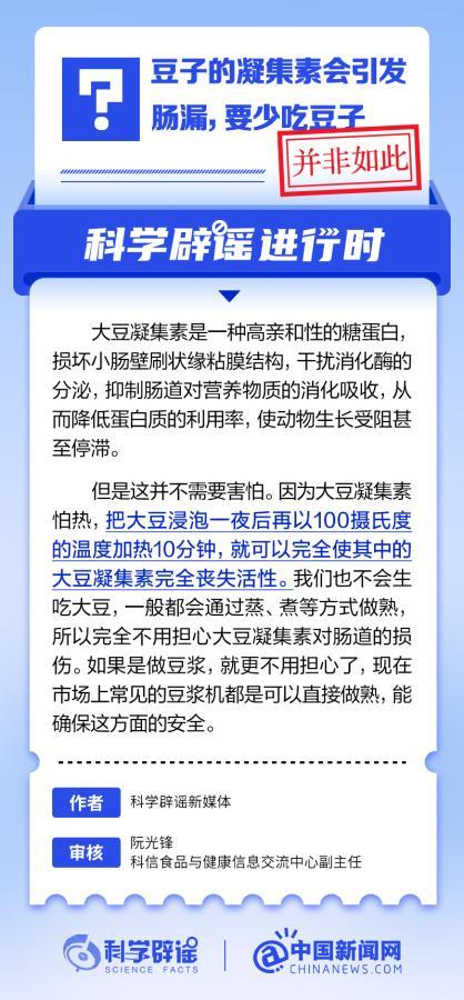 中新網(wǎng)5月29日電 大豆凝集素是一種高親和性的糖蛋白,會損壞小腸壁刷狀緣粘膜結(jié)構(gòu),干擾消化酶的分泌,抑制腸道對營養(yǎng)物質(zhì)的消化吸收,從而降低蛋白質(zhì)的利用率,使動物生長受阻甚至停滯。但這并不需要恐慌,因為大豆加熱足夠時間后,其中的大豆凝集素就會完全喪失活性。(來源:@科學(xué)辟謠 中國新聞網(wǎng)微博)