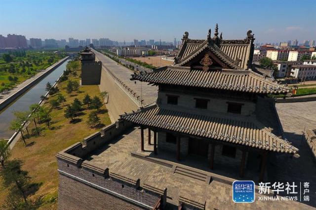↑2017年5月18日拍攝的大同古城城墻(無人機(jī)拍攝)。新華社記者 曹陽 攝