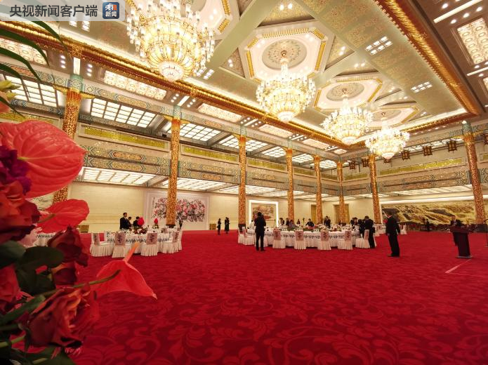 △習(xí)近平發(fā)表祝酒詞的講臺(tái)。(央視記者張宇拍攝)