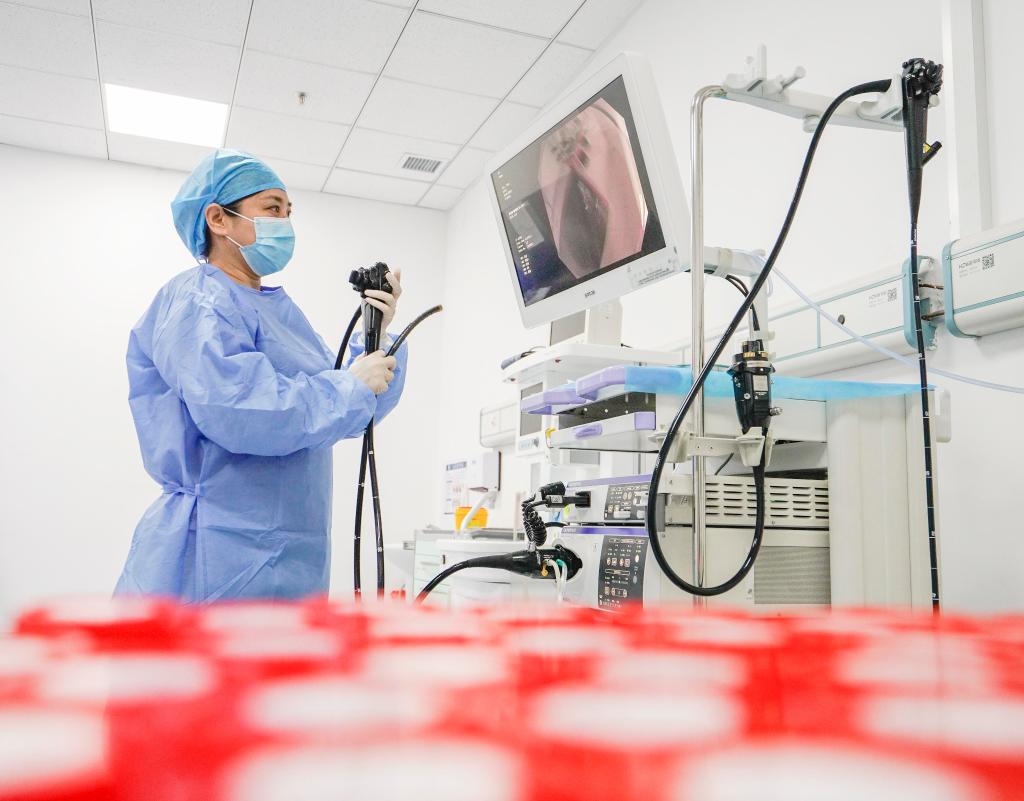 2024年1月2日,河北省遵化市中醫(yī)醫(yī)院的醫(yī)生在調(diào)試設(shè)備。新華社發(fā)(劉滿倉(cāng)攝)