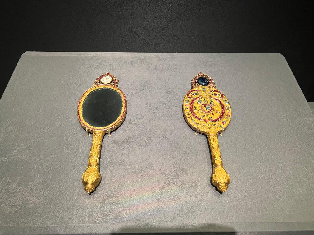 銅鍍金鑲表橢圓把鏡。新華社記者徐壯 攝