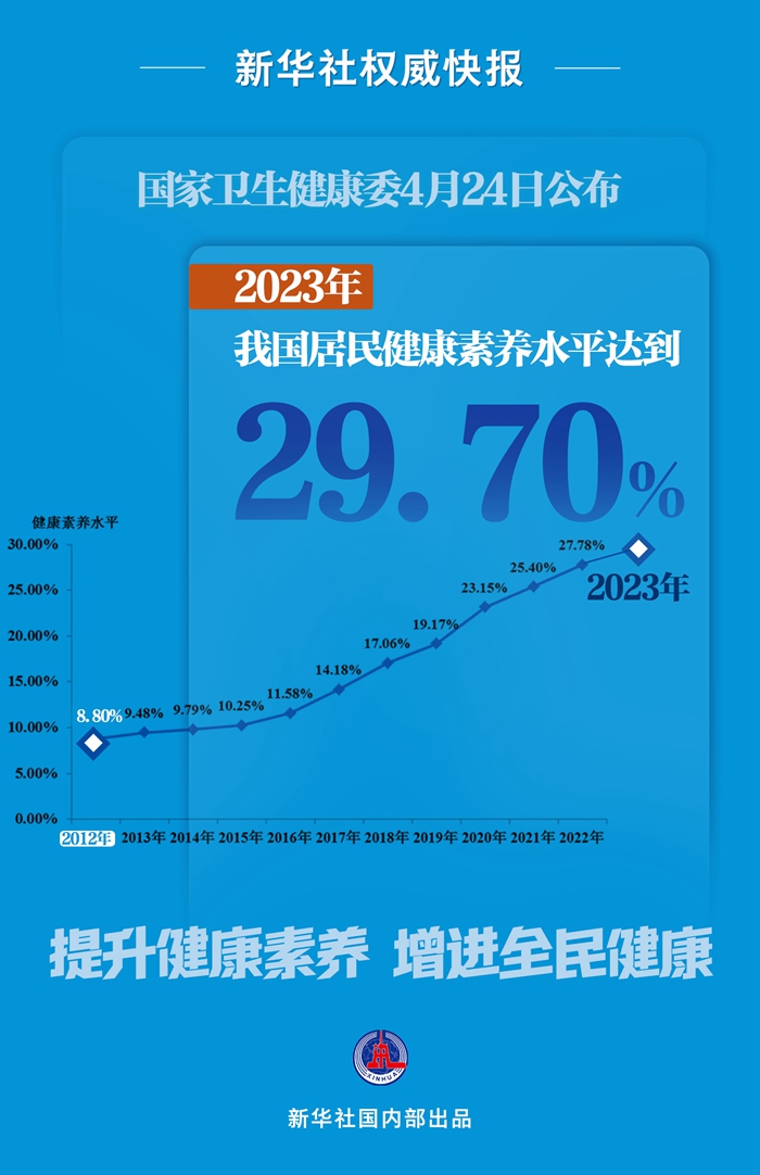 健康素養(yǎng)是健康的重要決定因素。記者4月24日從國家衛(wèi)生健康委了解到,2023年我國居民健康素養(yǎng)水平達(dá)到29.70%,繼續(xù)呈現(xiàn)穩(wěn)步提升態(tài)勢。
