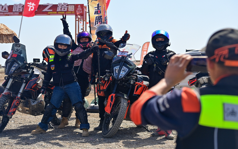 2024年5月1日,在新疆克拉瑪依市烏爾禾區(qū)世界魔鬼城景區(qū),車友在自駕線路起點(diǎn)合影。新華社記者 丁磊 攝