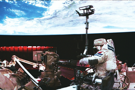 7月3日在北京航天飛行控制中心拍攝的神舟十八號(hào)航天員李聰在空間站組合體艙外作業(yè)的畫面。新華社發(fā)