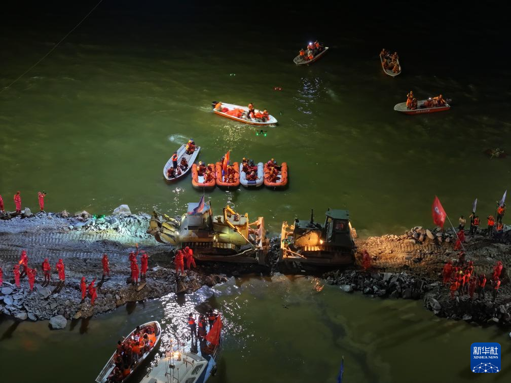 堵口刻不容緩。隨著決口內(nèi)外水位齊平,作業(yè)條件逐步成熟,堵口于6日啟動(dòng)。搶險(xiǎn)隊(duì)伍緊急修筑起作業(yè)平臺(tái),疏通堤上交通,晝夜作戰(zhàn),從決口左右兩邊雙向作業(yè),爭(zhēng)分奪秒推進(jìn)。