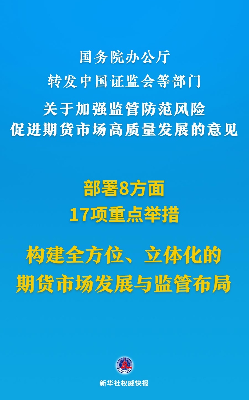 日前,國(guó)務(wù)院辦公廳轉(zhuǎn)發(fā)中國(guó)證監(jiān)會(huì)等部門《關(guān)于加強(qiáng)監(jiān)管防范風(fēng)險(xiǎn)促進(jìn)期貨市場(chǎng)高質(zhì)量發(fā)展的意見》。這一專門針對(duì)期貨市場(chǎng)的綜合性文件,系統(tǒng)全面部署8個(gè)方面的政策措施,推動(dòng)構(gòu)建全方位、立體化的期貨市場(chǎng)發(fā)展與監(jiān)管布局。