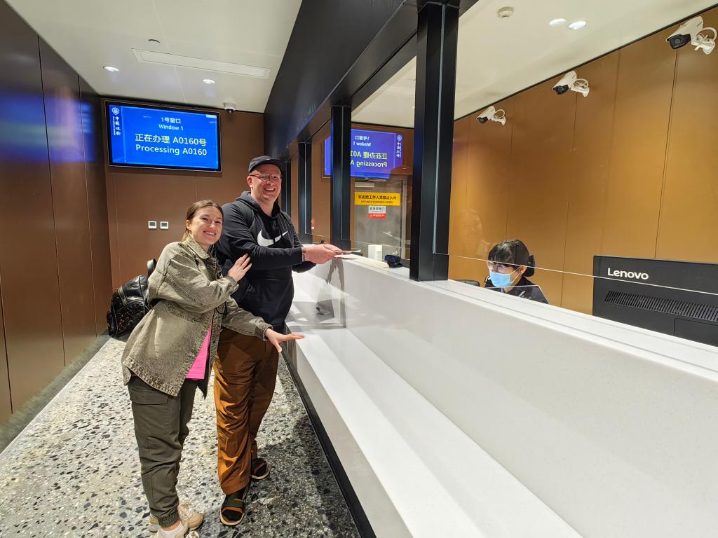 11月24日,正在辦理144小時過境免簽手續(xù)的俄羅斯旅客。(北京大興機場邊檢站供圖)