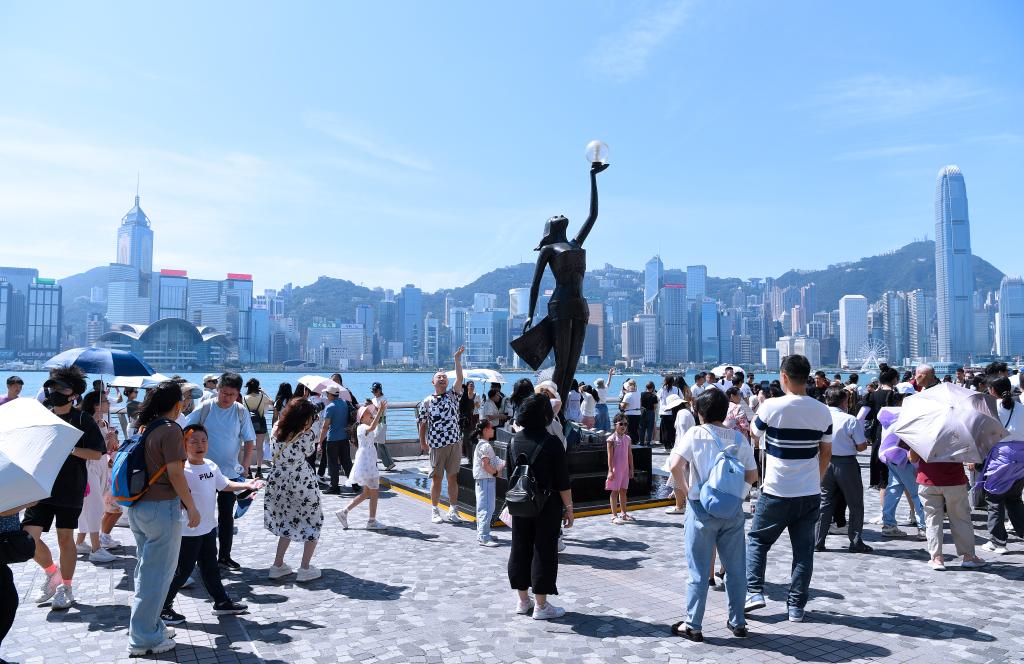 游客在香港尖沙咀游覽(10月3日攝)。新華社記者 陳鐸 攝