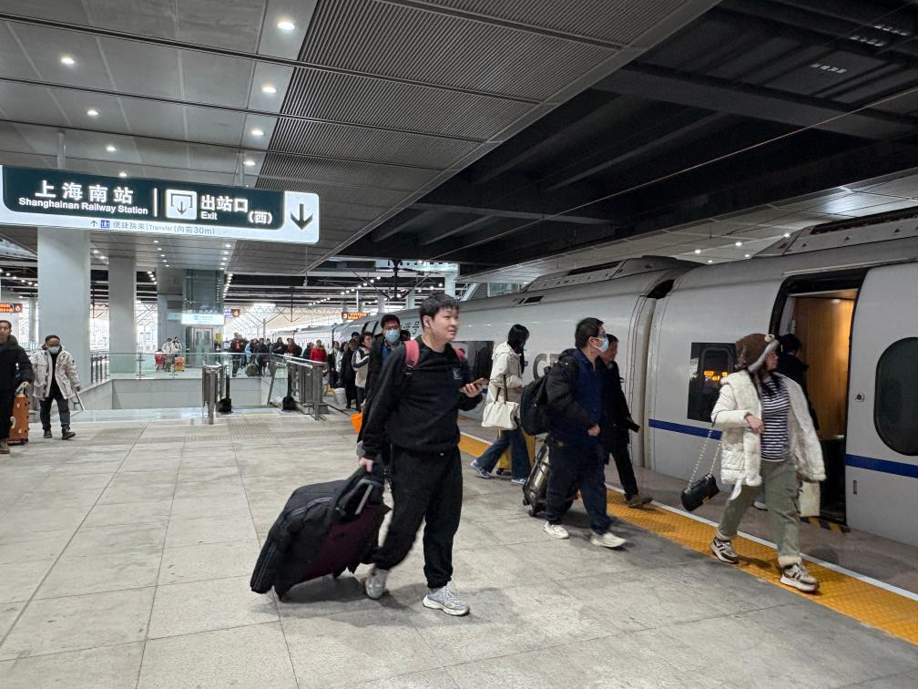 1月25日,旅客在鐵路上海南站的站臺上準(zhǔn)備乘車。新華社記者 王辰陽 攝