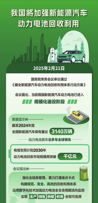 21日召開(kāi)的國(guó)務(wù)院常務(wù)會(huì)議,審議通過(guò)《健全新能源汽車動(dòng)力電池回收利用體系行動(dòng)方案》。會(huì)議指出,當(dāng)前我國(guó)新能源汽車動(dòng)力電池已進(jìn)入規(guī)?;艘垭A段,全面提升動(dòng)力電池回收利用能力水平尤為重要。