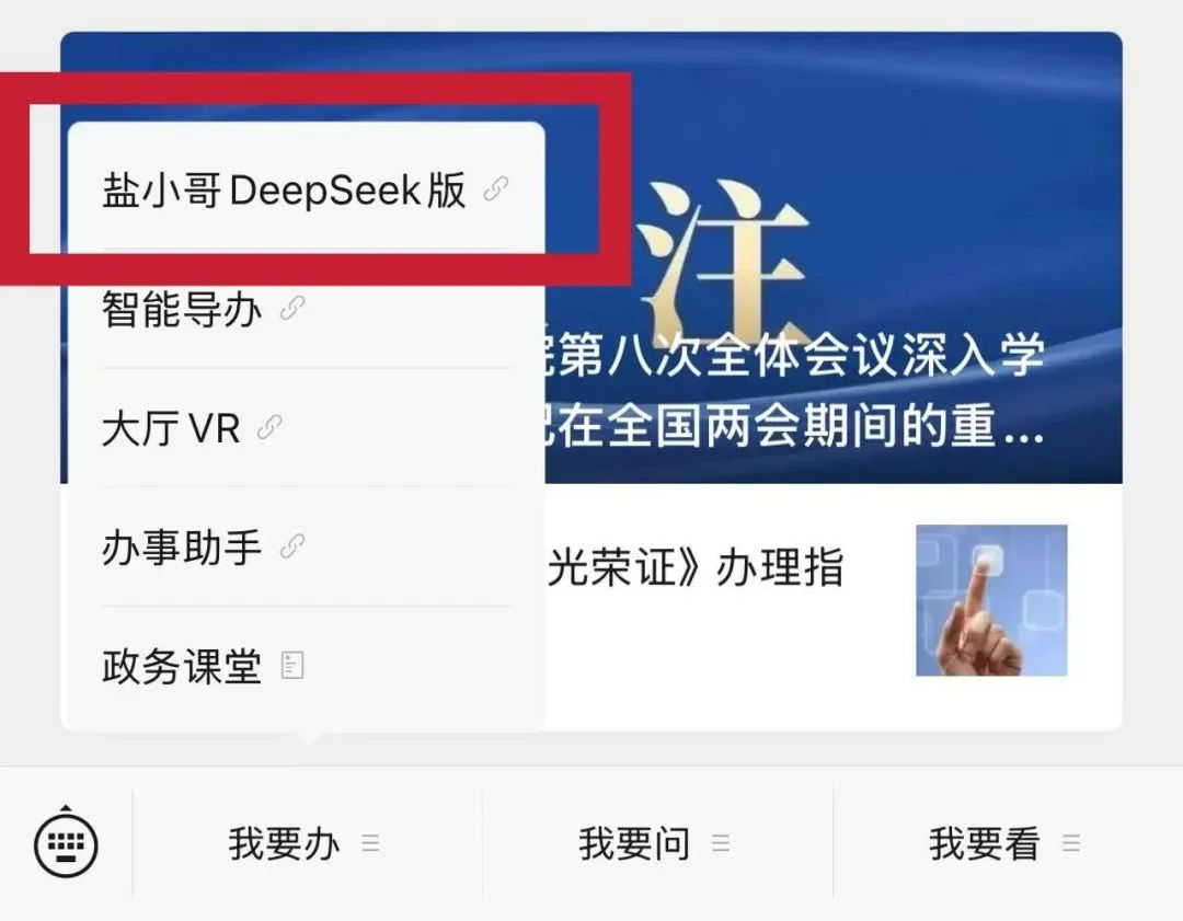 據(jù)介紹,市民只需進入“鹽湖之家”微信公眾號,通過下方菜單欄的“我要辦”選擇“鹽小哥”DeepSeek版智能客服,便可與智能客服進行交流互動,享受“AI導(dǎo)辦員”的智能導(dǎo)辦服務(wù)。