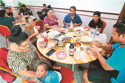 在太平洋島國瑙魯,人們在一家中餐館聚餐。新華社記者 王 申攝